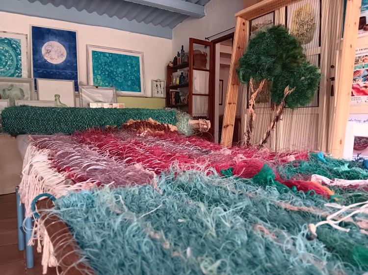 2024. Col.lectiva Pescart. Tapissos fets amb xarxes de pesca Magda Triay. Es Soleiet. Es Castell